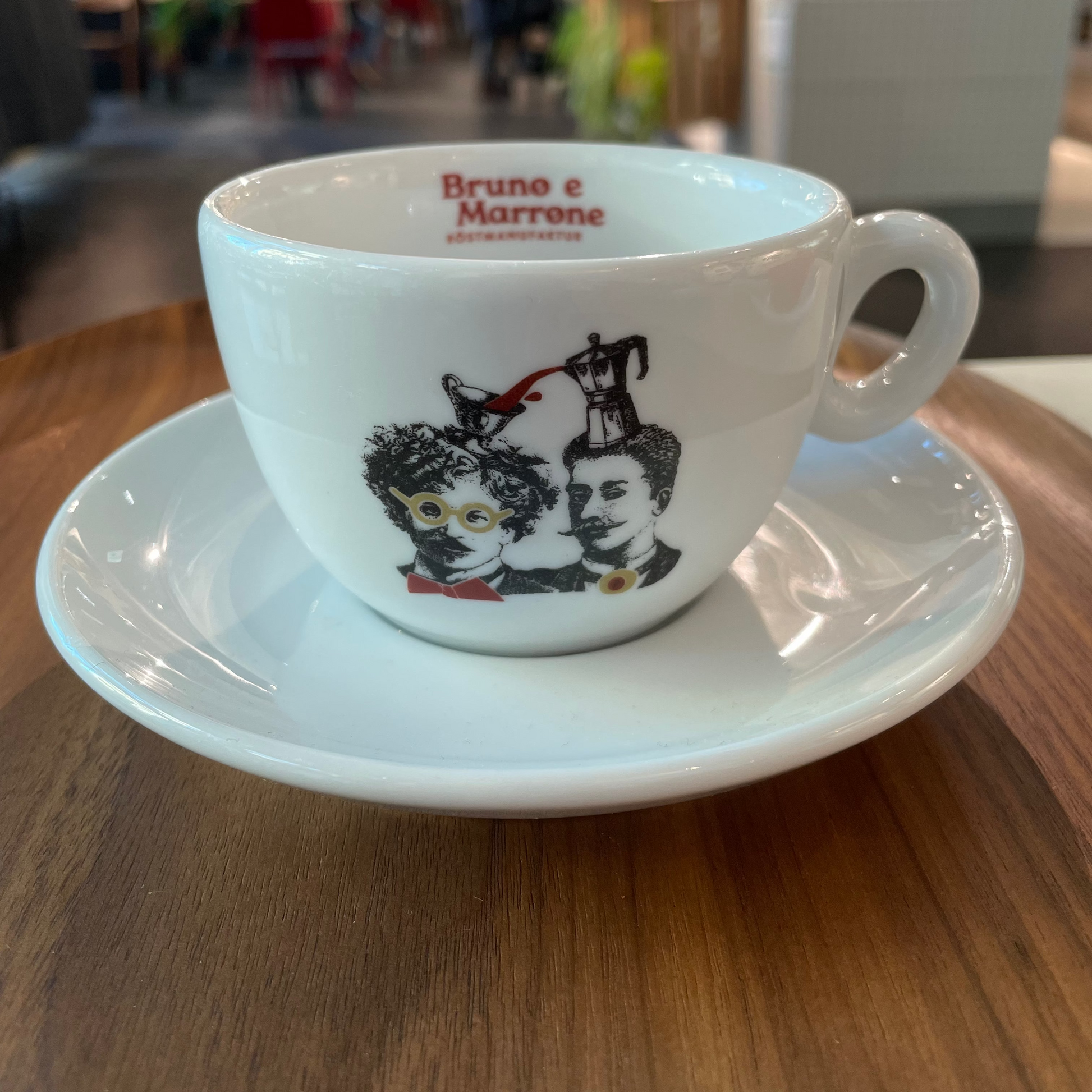 Cappuccinotasse weiß mit Untertasse und Bruno e Marrone Logo